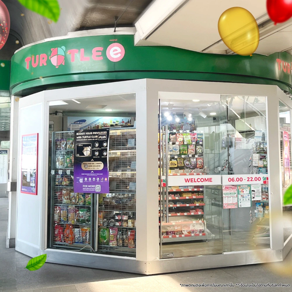 Turtle e officially opened its new store at BTS Udom Suk Station on 12 February 2026, offering a wide range of products that cater to all BTS commuter needs, including ready-to-eat meals, premium freshly baked bakery and daily essentials. The store is open daily from 6:00 AM to 10:00 PM.