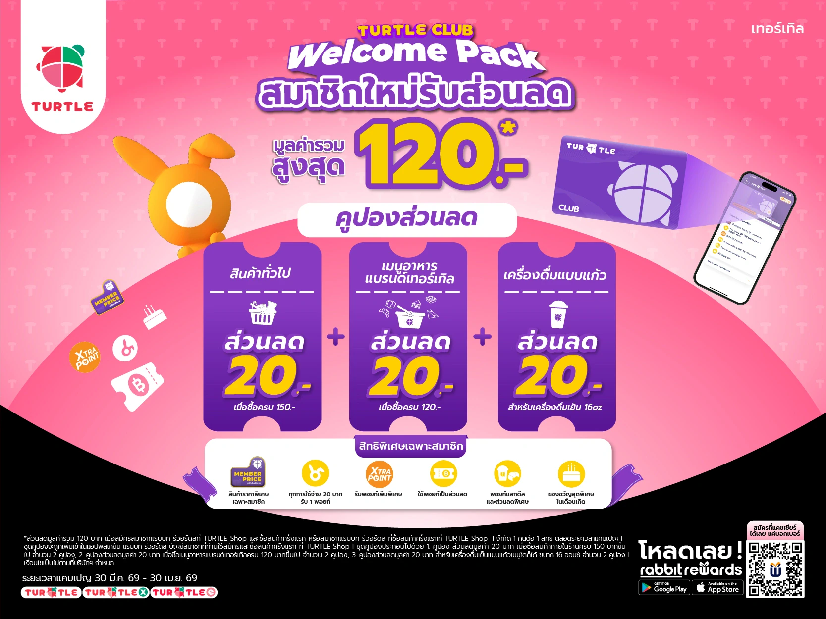 Welcome Pack for New Turtle Club Members! Join Turtle Club today and enjoy discount coupons worth up to 120 Baht
